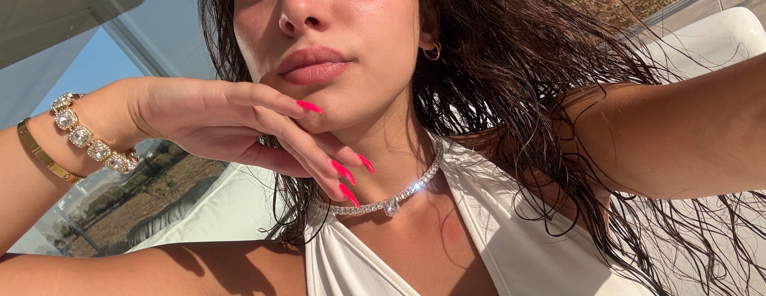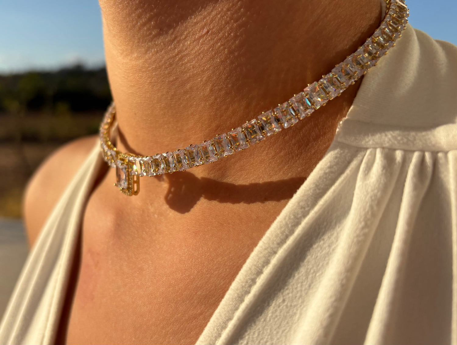 Choker από Ανοξείδωτο Ατσάλι με Στρογγυλές Ζιργκόν Πέτρες