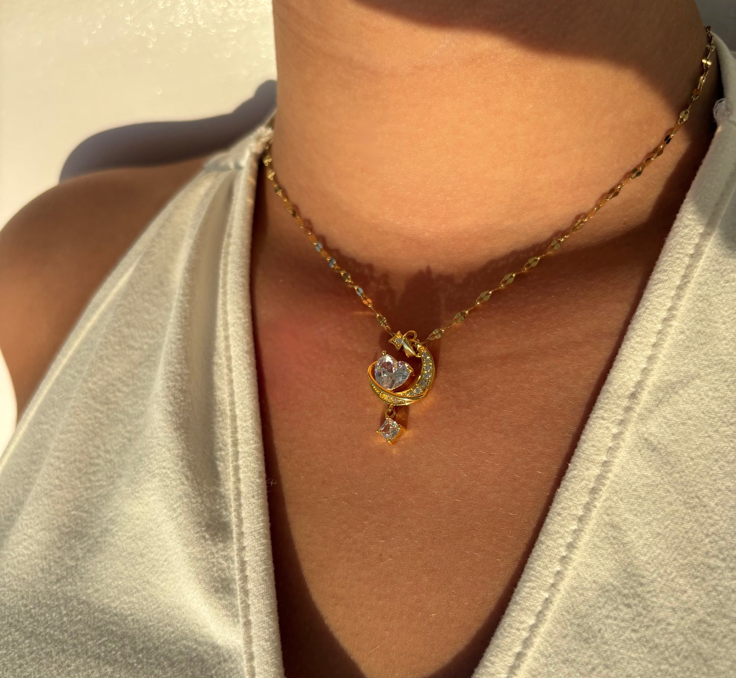 Κολιέ "Φεγγάρι & Καρδιά" από Ανοξείδωτο Ατσάλι με Ζιργκόν